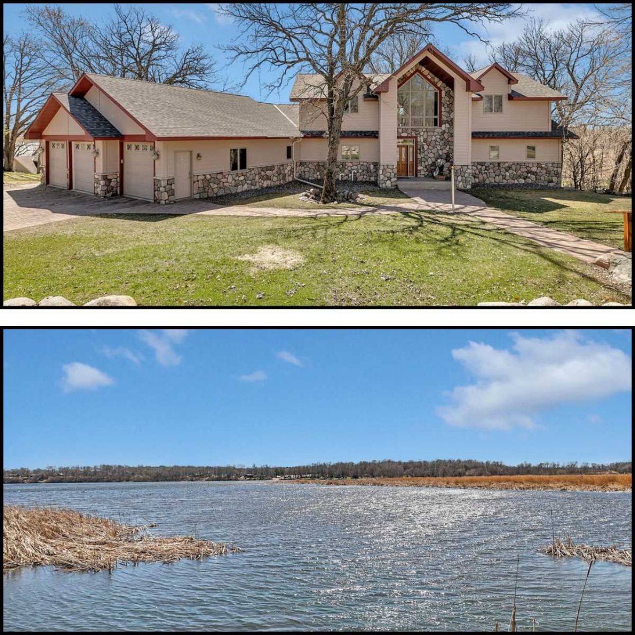 Can you imagine you and your family in this stunning 4 bedroom, 4 bath home with 2-story vaults and over 4,000 sq ft of top-quality living space on over 3 acres on Rice Lake? (Built by Art Arnold) Brand new roof installed in 2024 ? a $56,000 investment covering both the home and detached shed.Stunning 2-story vaults with an open, spacious kitchen, dining, and living room ready for entertaining family and friends. Great lake views from every room, with patio doors providing access to the deck and backyard from the primary bedroom, dining room, and living room. 3-car garage with in-floor heat, tuck-under lakeside garage with in-floor heat,...read more
