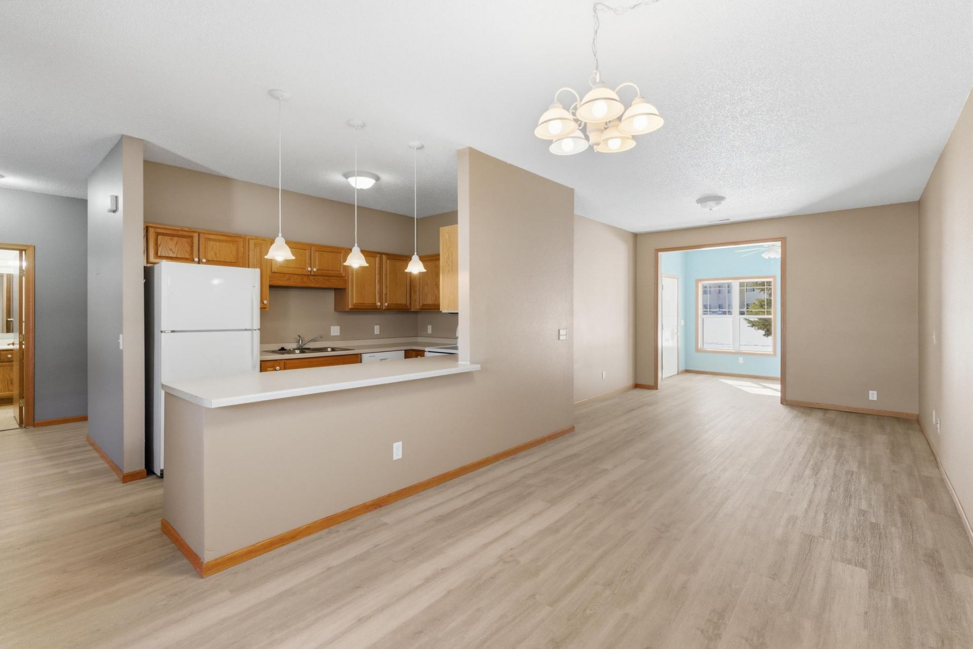 This well-maintained one-level townhome offers approximately 1,180 square feet with 2 bedrooms and 1 bathroom. The layout features a large foyer that opens to the kitchen, dining area, and living room. The kitchen includes oak cabinetry and a breakfast bar. A sunroom provides additional natural light and access to the backyard patio. The primary bedroom has a walk-in closet with pass-through access to the full bathroom, which includes both a tub/shower combination and a separate shower stall. The second bedroom offers flexibility for various uses. A stackable washer and dryer are included in the laundry area. Additional features include a...read more